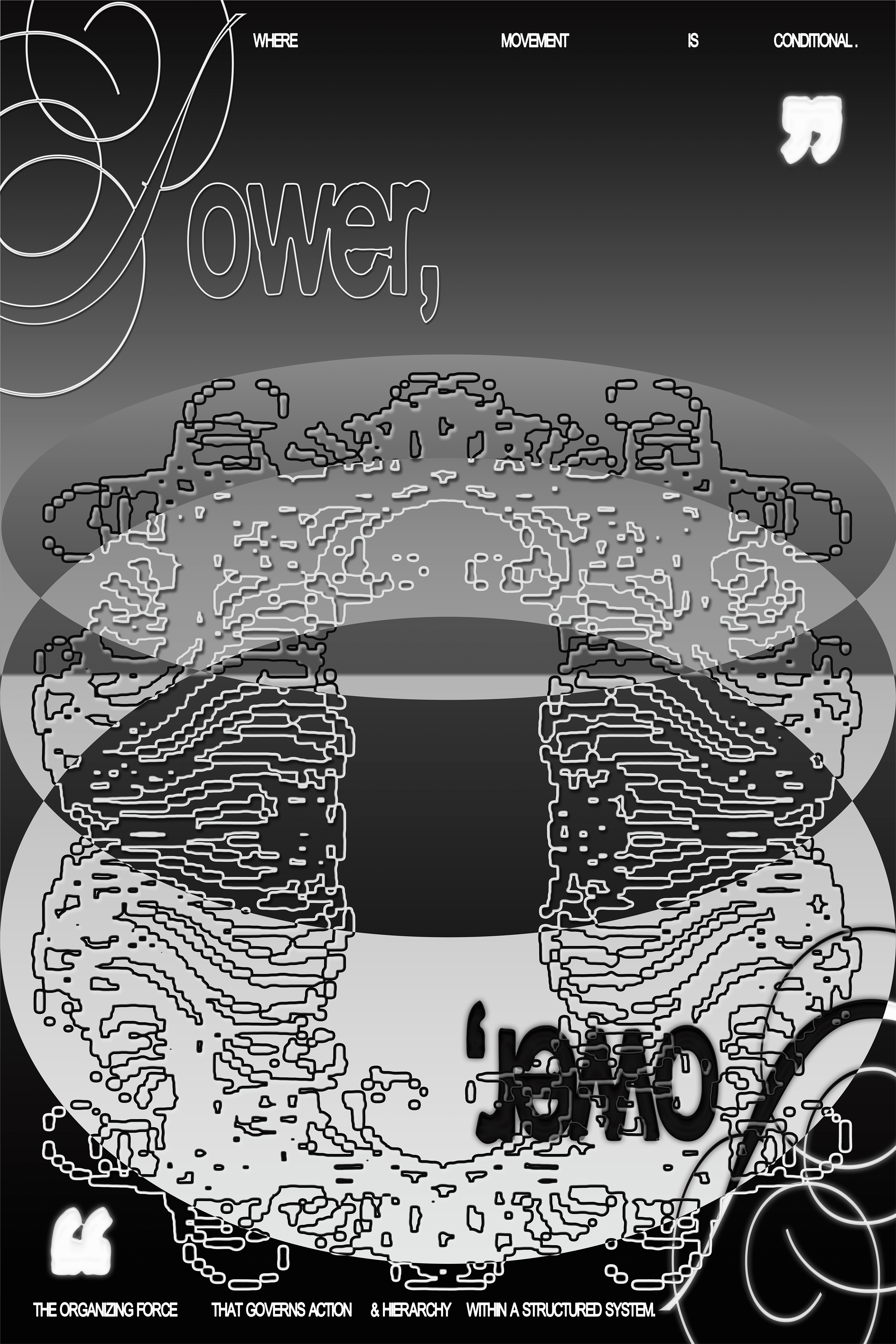 This personal exploration began as a concept highlighting control & systemic hierarchy through a typographic visual language. This project continues as a visual study of language as structure, and will expand to translate each term into a conceptual visual exploration: Power, Conditional, Obedience, Access, Movement, Restriction, Status, Risk, Habit.