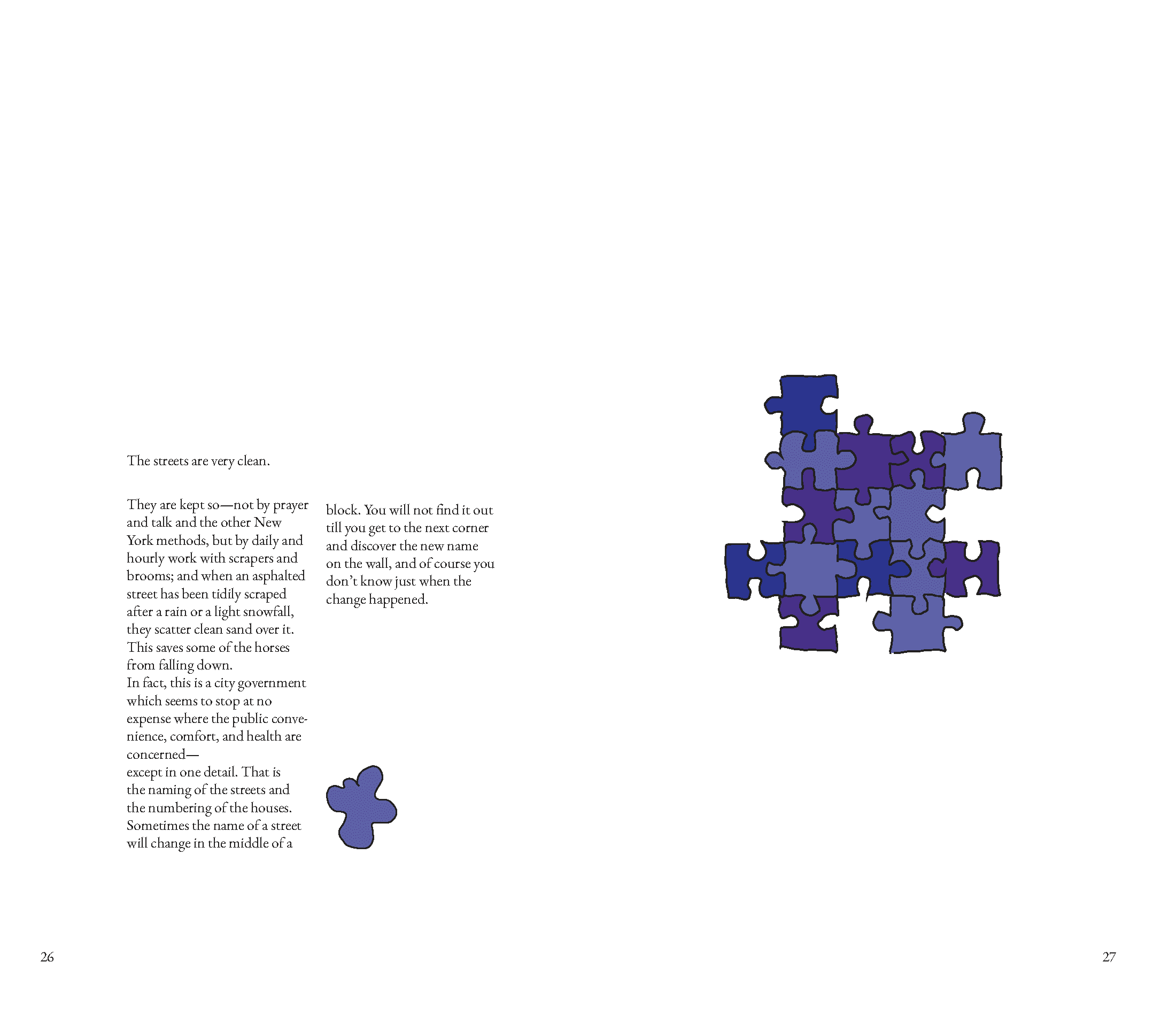 This layout project represents a metaphorical illustration book that reinterprets Mark Twain’s ‘The Chicago of Europe’ through visual storytelling. Using minimalist, colorful illustrations & varied paper choices, I explored metaphor as a design tool to translate quotes into visual narratives. The book features a consistent typographic system across all spreads, with a cover that incorporates my handwritten text.
