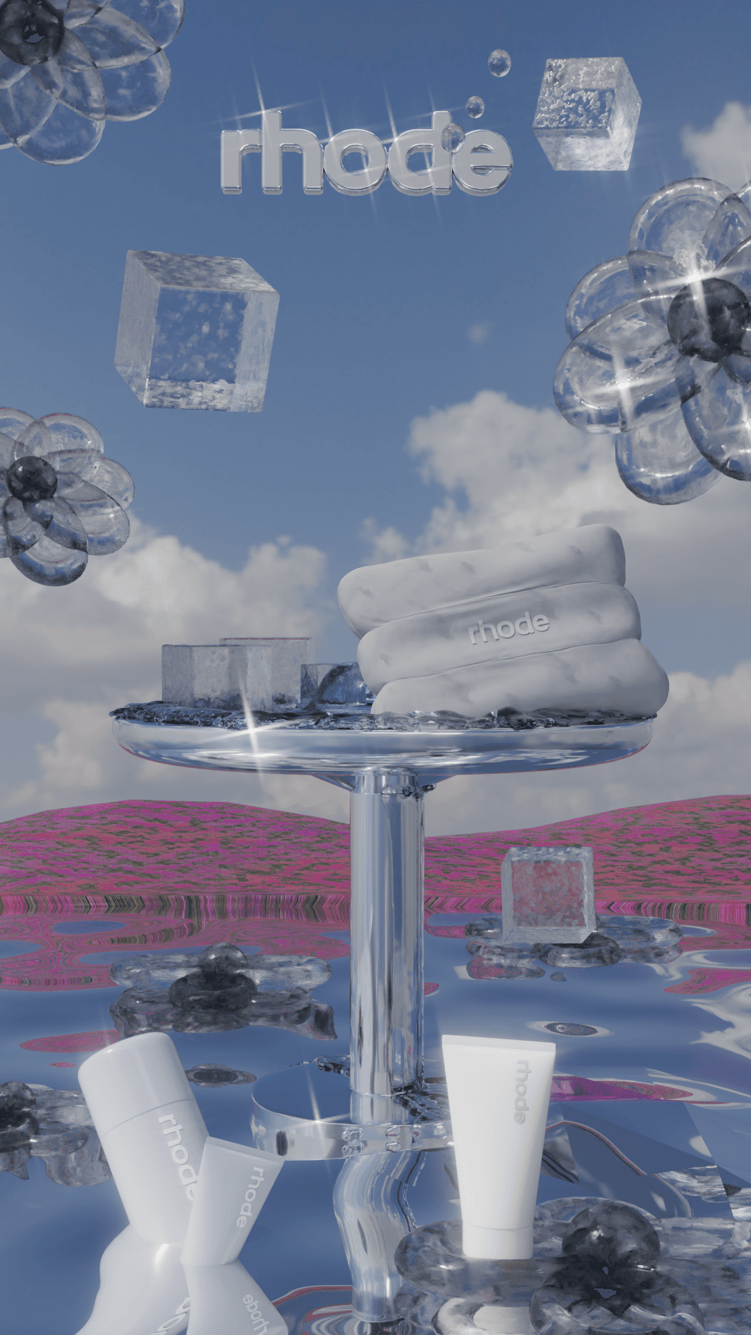 This video was created as a personal exploration of 3D product visualization and brand consistency. I focused on the modeling accuracy for all scene elements, followed by material definition & lighting to translate Rhode’s visual identity into a cohesive 3D concept. The project reflects my interest in beauty branding and my approach to building polished visuals that feel aligned with an existing brand language.